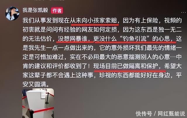 监控显示,小男孩反复抱柜子,手上触碰,罩子连凤冠砸地,当场愣住,家长也没露面。 张凯毅在视频里强调,这凤冠是老公耗时手工做的,象征爱情,没收门票也没牟利,就是单纯分享,现在挺晦气,不知怎么定损。