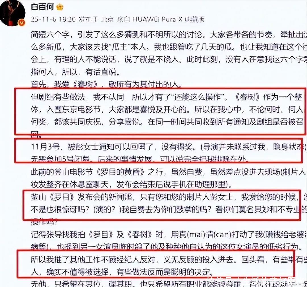 白百何当初推了所有工作接下这角色,11月6号直接发文怼人,说导演和制片人之前卖惨求合作,现在用完就扔。